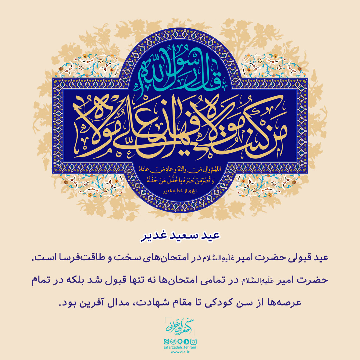 الْيَوْمَ أَكْمَلْتُ لَكُمْ دِينَكُمْ وَأَتْمَمْتُ عَلَيْكُمْ نِعْمَتِي وَرَضِيتُ لَكُمُ الْإِسْلَامَ دِينًا رویداد غدیر، مظهر امامت، ولایت و تجلی اکمال دین و اتمام نعمت و زمینهساز ظهور منجی عالم...